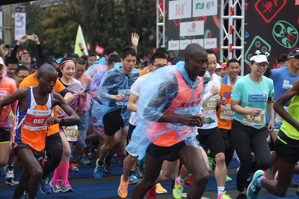 本屆賽事起點位于鳳凰體育場,途經宣化門、熊貓谷和都江堰市人民政府傾力打造的天府綠道、環山旅游線(熊貓綠道),馬拉松終點為“世界文化遺產”青城山。來自29個國家和地區的3萬名跑者踏上最美賽道,起跑前他們高聲齊唱《歌唱祖國》和《我和我的祖國》,現場氣氛十分燃!天下著小雨,跑馬人熱情不減。今年是成都雙遺馬拉松連續開跑第五年,五年奔跑歷程,今年的成都雙遺馬拉松更別具意義。