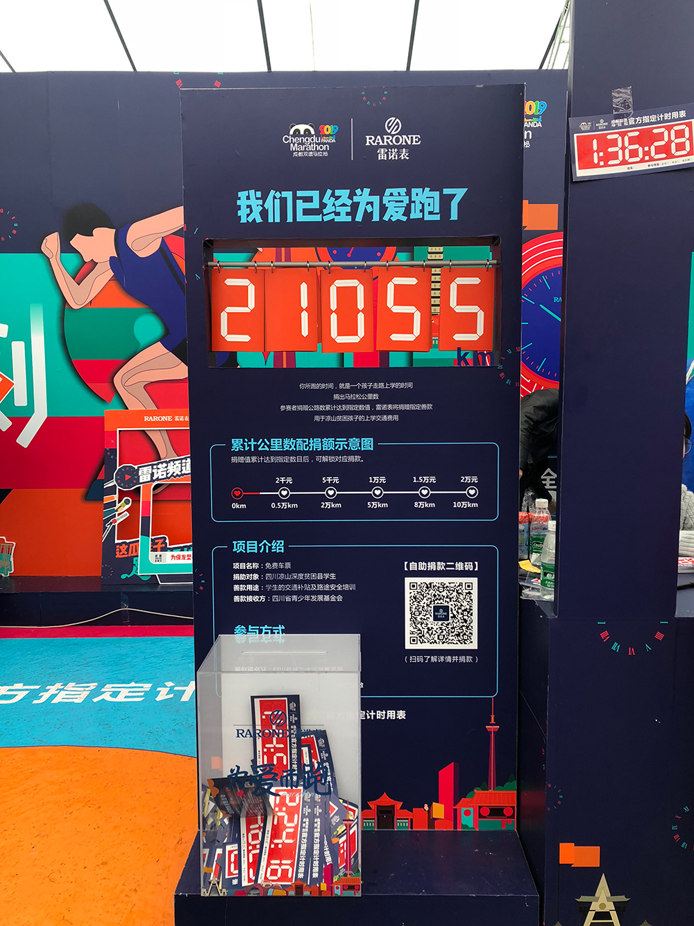 值得一提的是,今年雷諾表還為成都雙遺馬拉松的跑者們賦予了一種新式公益方式:參賽者只需填寫時間卡并提交至雷諾表展區,所有捐贈者累積達到一定數值,雷諾表將捐贈相應的款項給涼山貧困孩子,用以學生交通補貼。按照最終累積的公里數,雷諾表將為山區貧困兒童捐助5000元,傳達跑馬人的一份愛心。