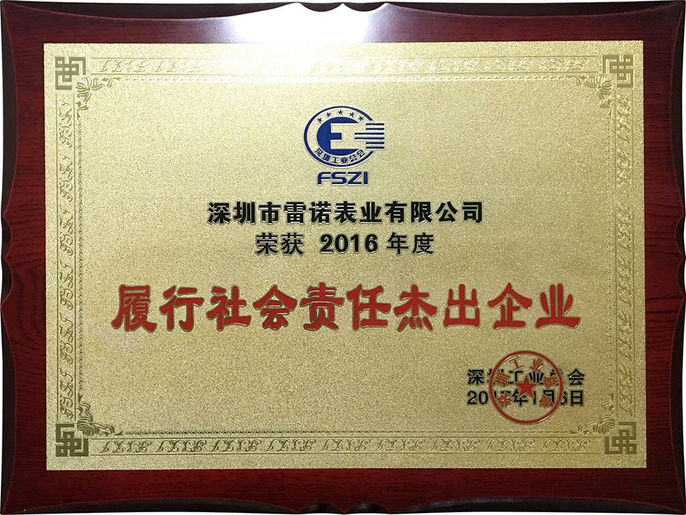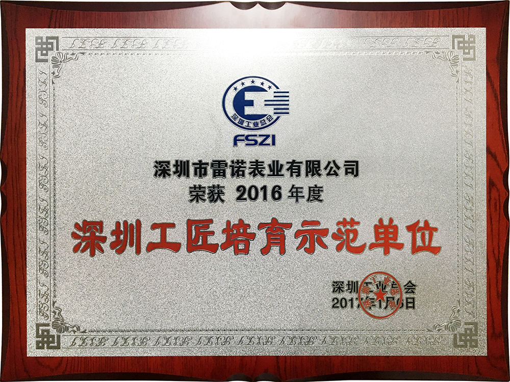 日前,深圳市雷諾表業(yè)有限公司在深圳市工業(yè)總會2016年度總會上榮獲:履行社會責(zé)任杰出企業(yè)、深圳工匠培育示范單位、自主創(chuàng)新標(biāo)桿企業(yè)稱號,雷諾表業(yè)董事長詹西洲先生榮獲企業(yè)家卓越貢獻(xiàn)獎(jiǎng),雷諾表業(yè)兩位技師榮獲深圳百優(yōu)工匠獎(jiǎng)。
