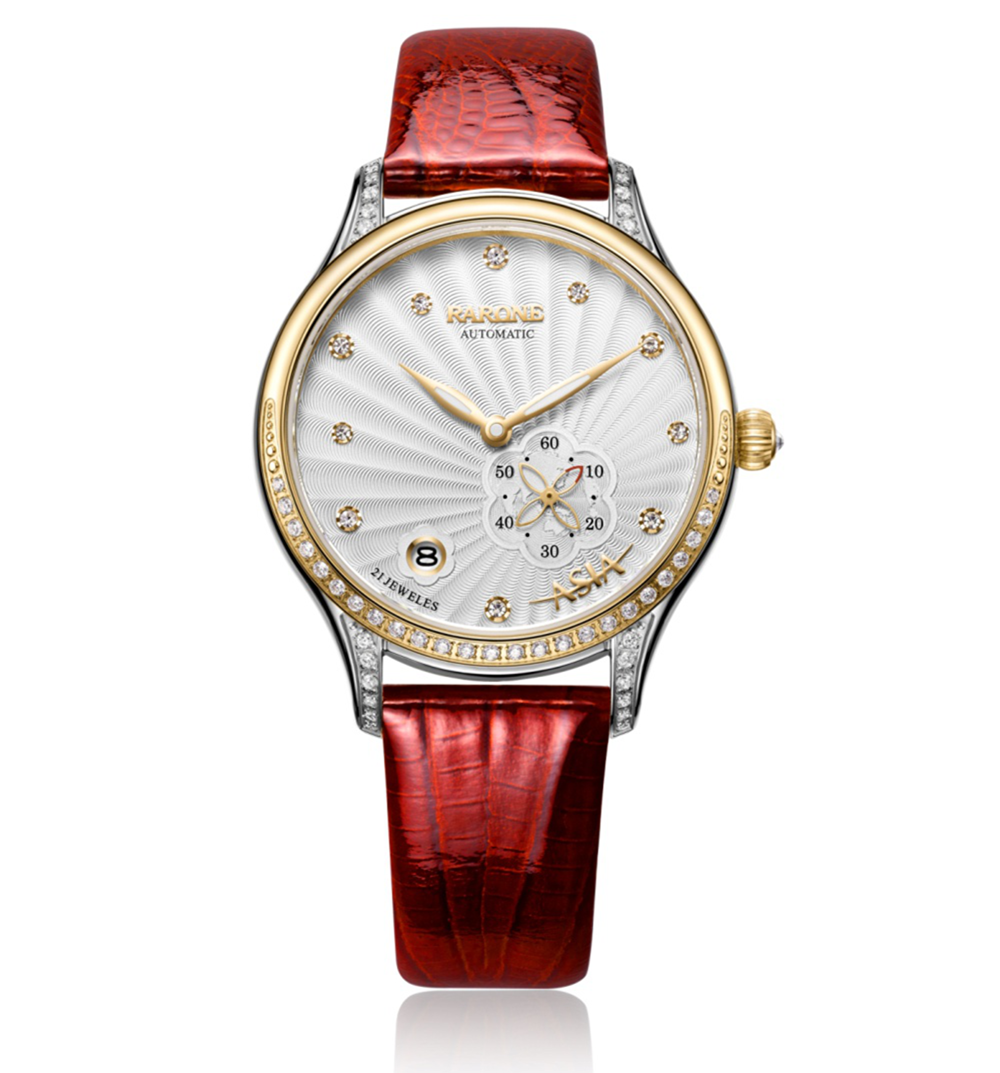 博鰲鼎智系列星月女表充分運用花瓣、星空、月牙等設計元素,結合商務腕表精簡要求,突出當代女性的優雅和智慧特征,充滿唯美和時尚的風格氣息。60秒功能小眼,四葉花瓣形秒針,設計獨特,輕巧靈動;10顆水晶刻度猶如星空中點綴的繁星點點,大小不一,錯落有致,營造無限唯美的意境;表圈鑲嵌月牙形水晶石,更加閃耀璀璨。