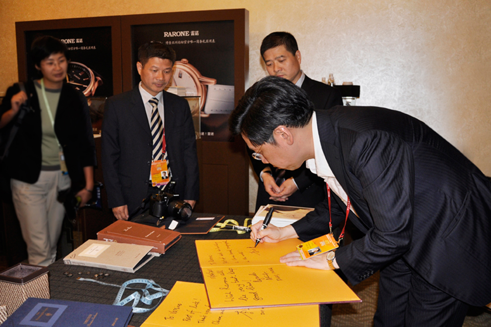 菲律賓前總統拉莫斯參觀雷諾表業展區親筆題詞并簽名