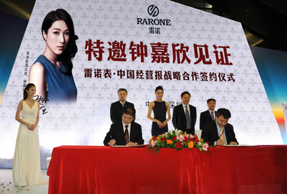 6月29日,雷諾表與《中國(guó)經(jīng)營(yíng)報(bào)》簽訂戰(zhàn)略合作協(xié)議,首次成就鐘表品牌與商務(wù)媒體的強(qiáng)勢(shì)結(jié)合。同時(shí)盛邀香港當(dāng)紅影星鐘嘉欣出席儀式,共同見證雷諾表又一品牌推廣戰(zhàn)略盛事。